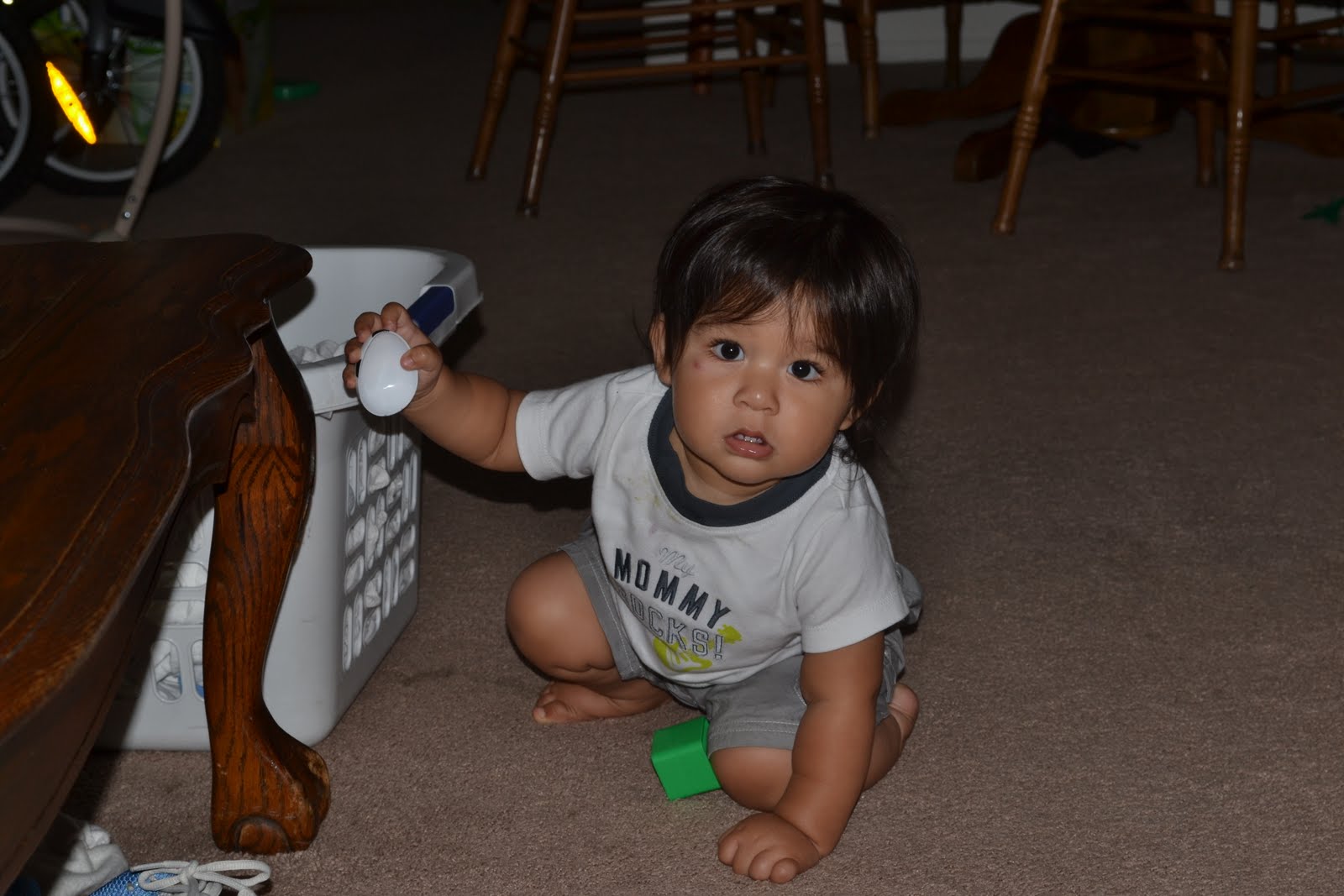 Yes, soy muy travieso. I got tired of running errands with Mommy so I hid the truck key by my high-chair. Look at my hiding spot! - Lorenzo